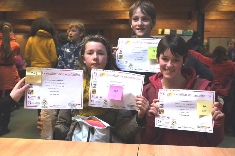 Emelyne, Jade, Manon et Ulysse à la dictée du Balfroid.