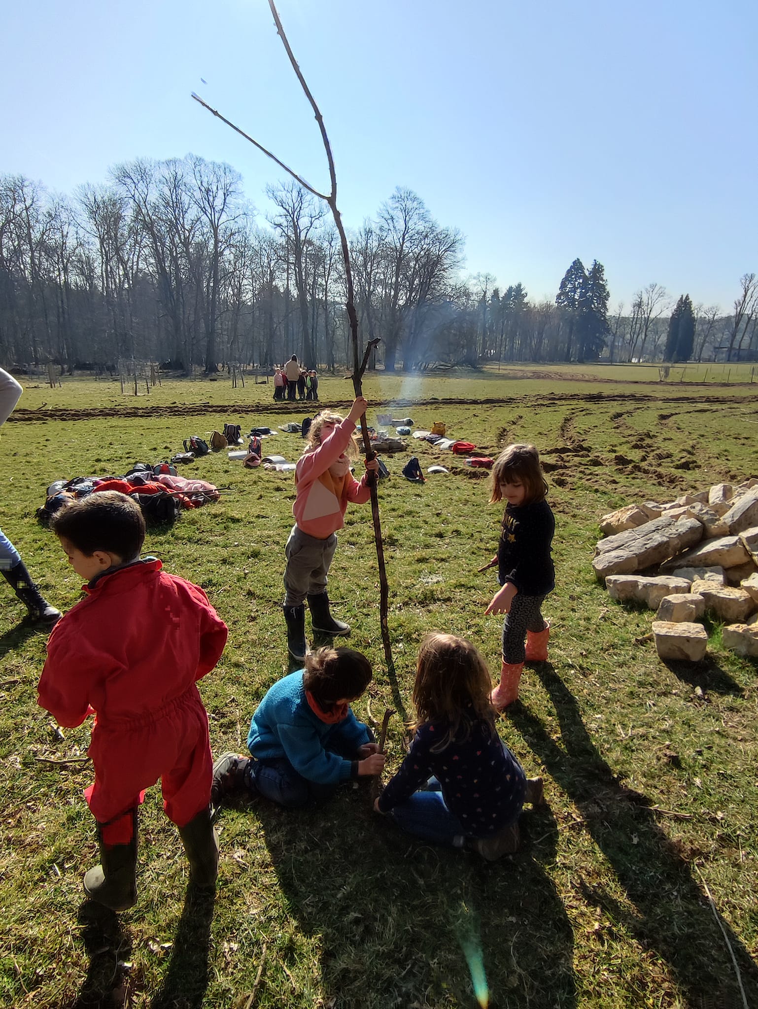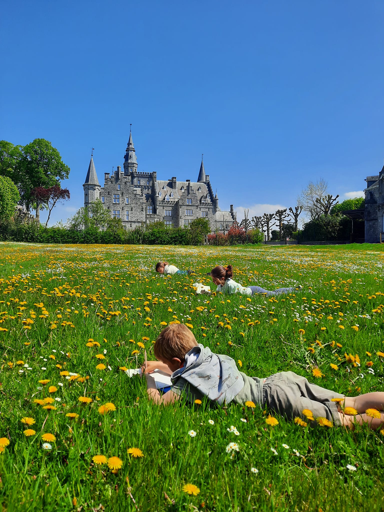 Pour l'ensemble de nos classes, l'école du dehors a lieu 1 fois par mois. Chaque classe se rend au château de Leignon pour y développer leurs connaissances, leur curiosité et éveiller leurs sens. Le château de Leignon nous offre une grande plaine entourée d'arbres et de magnifiques paysages. Quand le calme le permet, nous pouvons apercevoir un ensemble d'animaux sauvages. Depuis que nous avons mis en place l'école du dehors, nous constatons les bienfaits que cela apportent auprès de nos élèves.