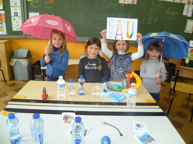 Suite une animation à l'école sur les 4 éléments, nous avons abordé ce sujet avec les élèves de 1ère année. Chacun a apporté des objets en rapport avec le feu, la terre, l'eau ou l'air. Nous avons fait une petite exposition.